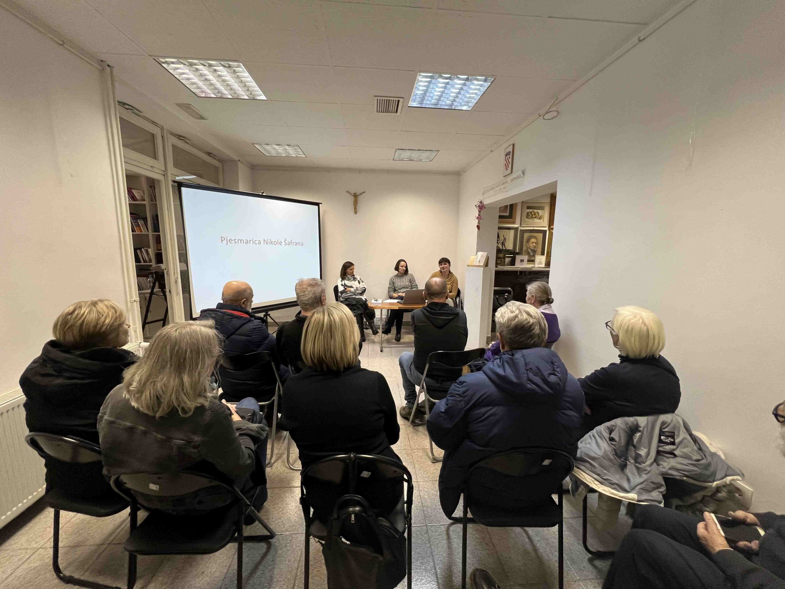 Posljednje ovogodišnje događanje , od gotovo trideset u proteklih dvanaest mjeseci, u Ogranku Matice hrvatske bilo je posvećeno kajkavskoj zbirci pjesama koja je godinama ležala tek u rukopisu. Radi se o Pjesmarici Nikole Šafrana, nastaloj oko 1800. godine te objavljenoj 2020. godine uz uvodnu studiju i rječnik, a za potrebe tiska ona je i transkribirana, što je urednicama ovog izdanja predstavljalo osobit izazov.